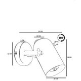 Specifikacija Zidna lampa Materijal lampe Metal Materijal abažura Metal Dimenzije Ukupna visina 18 cm Prečnik abažura 11 cm Visina abažura 17 cm Prečnik baze 12 cm Visina baze 3 cm Broj izvora svetlosti 1 Tip
