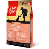 Poreklom iz Kanade ova hrana za pse prolazi najstrožije kontrole kvaliteta i obezbeđuje najbolje za Vaše ljubimce. ORIJEN hrana za štence omogućiće Vašem psu brz i ujednačen razvoj, jak imunitet i zadovoljenje svih njegovih nutricionističkih potreba.Orijen Puppy hrana je namenjena štencima i psima u razvoju, bazirana na mesu piletine, ćuretine i ribe. Proizvodi se u Alberti (Kanada) u nezavisnom porodičnom poduzeću od svežih kanadskih sastojaka. Ona sledi novi koncept ishrane pasa: biološki prikladna suva hrana za pse. Biološki prikladna hrana za pse je prilagođena izvornom načinu ishrane psa i istovremeno uzima u obzir izmenjen stil života sa redovnom ishranom i manje kretanja. DOZIRANJE:SASTAV: Sveža piletina (18%), sveže smrznuti losos (12%), sveže smrznuta curetina (10%), sveže smrznut ceo oslic (4%), sveže smrznuta cela haringa (4%), sveže smrznuta cureca jetra (4%), sveže pilece iznutrice (jetra, srce) (4%), sveža jaja (4%), dehidrirana curetina (4%), dehidrirana piletina (4%), dehidrirana haringa (4%), dehidrirana pileca jetra (4%), dehidrirano jaje (4%), cela crvena sočiva, celi pinto pasulj, pileca mast (3%), cela zelena sočiva, ceo mornarski pasulj, cele leblebije, ceo grašak, ulje bele ribe pollock (2%), vlakna sočiva, sveže smrznute novozelandske zelene školjke, sušene morske alge, sveža cela muskatna tikva, sveža cela bundeva, so, sušeni koren cikorije, sveže cele jabuke, sveže cele šargarepe, sveže cele kruške, sveže cele zukini tikvice, sveže lišće cvekle, svež kelj, svež spanac, sveže lišće repe, cele brusnice, cele borovnice, cele saskatoon bobice, kurkuma, sikavica, koren čička, lavanda, koren belog sleza, šipak. ANALITIČKI SASTAV:Sirovi proteini 38%Sadržaj masti 20 %Sirovi pepeo 9 %Sirova vlakna 4%Vlaga 12 %Kalcijum 1,3 %Fosfor 0,9 %Omega6 masne kiseline 3 %Omega3 masne kiseline 1 %DHA / EPA 0,25 % / 0,3 %DODACI (po kg): Tehnološki dodaci: 1b306(i) Ekstrakti tokoferola iz biljnih ulja: 121mg, E330 limunska kiselina: 40mg. Mirisni dodaci: Ekstrakt ruzmarina: 80 mg. Nutritivni dodaci: 3b606 (Cink: 120 mg), 3b406 (Bakar: 11 mg), 3a821 vitamin B1: 120 mg, 3a825i vitamin B2: 20 mg, 3a314 niacin: 200mg, 3a841 kalcijumDpantotenat: 60 mg, 3a831 vitamin B6: 35 mg, 3a316 folna kiselina: 7 mg, vitamin B12: 0.2 mg, 3a700 vitamin E 500 IU. Zootehnički dodaci: 4b1707 Enterococcus faecium DSM 10663/ NCIMB 10415 1x10 9 CFU.