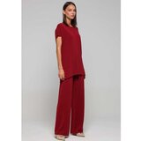 Ove pantalone u raskošnoj bordo nijansi osmišljene su za žene koje žele udobnost bez kompromisa po pitanju stila. Mekana, elastična tkanina prati liniju tela i pruža prijatan osećaj tokom nošenja, dok ravne, široke nogavice doprinose elegantnom i izduženom izgledu siluete. Minimalistički dizajn bez dodatnih detalja pruža svestranost u stilizovanju, bilo da ih nosite uz opuštene komade ili u kompletu sa odgovarajućim gornjim delom za celovit i sofisticiran izgled.