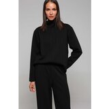 Gornji deo trenerke u crnoj boji modernog kroja izrađen je od materijala sa diskretnom teksturom koja unosi sofisticiranost u sportskoležeran stil. Čista forma sa naglašenom kragnom pruža elegantnu notu, dok klasični dugi rukavi doprinose praktičnosti i svakodnevnoj nosivosti. Ovaj komad lako možete kombinovati sa donjim delom istog seta ili uklopiti u casual autfit za svaki dan.