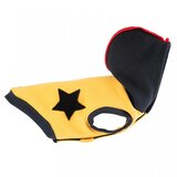 Duks sa kapuljačom i čičak trakom na predelu stomaka Materijal: 65% poliester, 35% pamuk Održava se pranjem na 40 stepeni Namenjeno manjim rasama Može se koristiti u prelaznim periodima godišnjih doba Dimenzije veličine XS: obim vrata 36; obim grudi 46; dužina 30,5. Boja: žuta sa sivim detaljima Proizvedeno u Srbiji