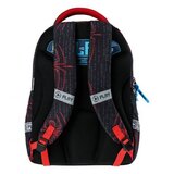 Samostojeći,triput opšiveni,vodootporna tkanina, visokokvalitetni poliester,reflektujuće bezbednosne trake,podesive ramenice u obliku banane,kopča za fiksiranje ramenica, meka ručica sa postavom, lagan i izdržljiv,džepovi sa strane, anatomski oblikovana mrežasta leđa, ventilirajuća leđa,štampana postava, organizator u prednjem delu.Dimenzije: 41 x 31 x 21 cmTežina: 920gZapremina: 26lMaterijal: poliester 600DLeđa: Anatomski oblikovana sa mekim jastučićimaZiperi: SBS metalni potezačiAplikacija: Sublimacija i svetlucava štampa