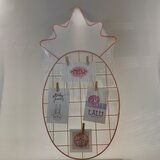 Ulepšajte svoj prostor fotografijama svojih članova porodice, prijatelja, ili sa nezaboravnih putovanja uz pomoć rama od metala 58x30 cm 190600 .Ram je izrađen od metala, u obliku ananasa, sa metalnom mrežom u unuturašnjosti , i sa drvenim štipaljkama za kačenje fotografija. Ram od metala je jednostavni detalj, prefinjenih boja koje se uklapaju uz svaki enterijer i namenjen je svakoj prostoriji vašeg doma. Odaberite omiljene četiri fotografije i postavite ih u ram pomoću drvenih štipaljki. Karakterisitike: Materijal: Metal/Papir/Drvo Dimnezije:58x30 cm Boje: Mix dizajna *Za određeni dizajn kontaktirajte nas Jedinična mera: 1 kom
