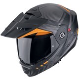 Ako ste ljubitelj offroad, onroad i avanturističkih aktivnosti, razvili smo pravu kacigu za vas, ADX2. ADX2 je kabriolet kaciga na preklop za sve one koji takođe žele da povremeno brzo voze ili koji žele da budu na putu bez preklopnog dela i sa MX naočarima na bilo kom terenu. Jednostavno modularni šlem za sve prilike. Homologovan kao kaciga za mlazne avione i šlem za celo lice (P/J) i sa svim karakteristikama za turneje, avanturiste i vozače po zemljanim putevima, to je prava kaciga za vašu avanturu. ADX2 je umetnik koji se brzo menja, kaciga za brzu vožnju autoputem zahvaljujuci uklonjivom avanturističkom viziru, kaciga za vožnju van puta zahvaljujuci delu koji se može skidati i kaciga za dnevnu vožnju zahvaljujuci integrisanom štitniku od sunca. Kwickwick obloga koja upija vlagu pruža Dieu sve namene, pa čak i na visokim temperaturama maksimalnu udobnost vožnje. Montaža inovativnog i elegantnog Bluetooth interfona EXOCOM je vec pripremljena za ADX2 i nudi se kao opcija. Karakteristike: (P/J) Homologacija Oklop napravljen od najnovijeg polikarbonatnog kompozitnog materijala: testiran u aerotunelu, niska buka i aerodinamičan dizajn za maksimalnu udobnost. EPS obložena šipka za bradu za dodatnu zaštitu. SpeedView: unutrašnji vizir na uvlačenje koji pruža trenutno olakšanje očiju u promenljivim svetlosnim uslovima Automatska mikrometrička kopča za kaiš za bradu za brzo otpuštanje i precizno podešavanje KwikWick podstava: Veoma efikasna, hipoalergena, uklonjiva, periva, veoma mekana i prijatna za kožu, KwikWick C podstava novih modela ScorpionExo je najbolje što možete učiniti za svoju glavu Pinlock Maxvision Prepared: Pinlock sočiva sprečava zamagljivanje stalnim vazdušnim hodnikom između sebe i vizira, čak i ako se temperaturna razlika između unutrašnje i spoljašnje povecava 2 veličine školjke EXOCOM kompatibilan Specifikacije: Materijal: polikarbonat Zatvaranje: Mikrometrijska kopča Veličine: XS XXL Standard: 22.06 Integrisani vizir za sunce Sadržaj: 1k Scorpion ADX2 Camino kaciga 1k torbica