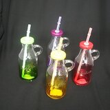 Tegla staklena sa slamčicom, više boja Dimenzija:h15cm,Zapremina:200ml