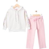 Trenerka za devojčice sa kapuljacomDečiji komplet za devojčice koji se sastoji od bele dukserice sa kapuljačom i cvetnim detaljima na rukavima i roze pantalona sa džepovima. Moderan i praktičan set koji je odličan za školu, šetnju i svakodnevne aktivnosti. Udoban kroj i trendi dizajn čine ga idealnim izborom za devojčice koje vole spoj stila i komfora.