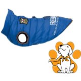 Plava topla jakna sa fleece postavom i ugrađenim pojasom. Lako se oblači, pruža potpunu zaštitu od vetra i hladnoće, idealna za male pse.