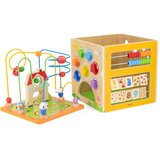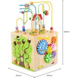 Multifunkcionalna interaktivna kutija sadrži niz karakterističnih elemenata koje podstiču razvoj senzornih veština kod dece. Igra se sastoji od elemenata sa tematikom saobracaja, sortiranja oblika, abakus, igre sa klizačima. Edukativne igračke poput 5u1 interaktivne kutije pomažu u poboljšanju vizuelnomotoričke koordinacije, mašte i finih motoričkih sposobnosti. Dimenzije pakovanja:33*33*34 cm ,Dimenzije proizvoda:30*30*30cm ,Uzrast: 18+ meseci