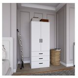 Kvalitetna izradaNapravljen od visokokvalitetne iverice obložene melaminom, ovaj garderober ima robusnu debljinu od 18 mm, što obezbeđuje izdržljivost i dugotrajnost. Mat bela završna obrada dodaje moderan dodir, bez napora upotpunjujući dekor vašeg doma.