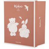 Okrugli i velikodušni plišani zec! Sa dimenzijama od 25 cm i mnogim prefinjenim detaljima, ovaj zec je savršen za bebe od rođenja. Njegovo krzno nudi neuporedivu mekocu, a velika veličina je savršena za maženje! Beba može lako da zgrabi svog novog plišanog prijatelja za ruke i uši. Pored nasmejanog lica, ovaj plišani zec ima neverovatno mekan i pahuljast stomak, dizajniran za najbolje maženje. Ružičaste boje, ovaj Patapuf je ukrašen detaljima koji mu daju odlučno bezvremenski stil: lasta, sinonim za obnovu i svežinu, vez koji je prijatan na dodir, prelep karirani štampani uzorak na srcu i odgovarajuce trake oko vrata. Ova ružičasta plišana igračka dolazi u prelepoj poklon kutiji koja se može prilagoditi zahvaljujuci umetku koji se nalazi ispod poklopca. Kutija se može ponovo koristiti kao kutija za odlaganje ili za čuvanje bebinih malih uspomena. Ovaj intenzivno mekani zec Kalu je idealan poklon za rođenje. Roditelji ce biti sigurni da je njihovo dete tako dobro praceno. Pažljivo izrađen, napravljen je od 97% recikliranih materijala (sintetičko krzno, mikrosobom, poplin), uključujuci i reciklirano poliestersko punjenje. Ovog ružičastog plišanog zeca Patapuf možete prati u mašini za veš na 30.