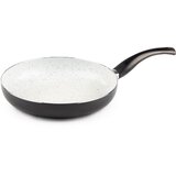 Materijal posude: aluminijum. Materijal ručke: bakelit. Ergonomska ručka: da SoftTouch. Ručka bez zagrevanja: da. Premaz: nelepljiv mineralni premaz. Upotreba na indukcionoj površini: da. Upotreba u mikrotalasnoj pećnici: ne. Upotreba u rerni: ne. Pranje u sudomašini: da. Štetne materije (PFOA): nema. Prečnik posude: 28 cm. Prečnik dna: 22 cm. Dimenzije: 47 x 28 x 6 cm. Garancija: 5 godina.